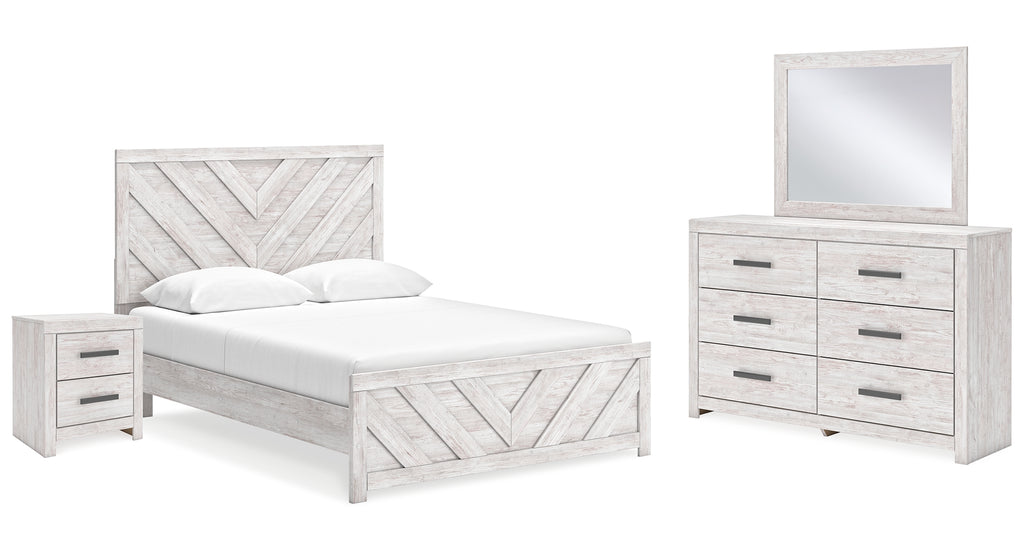 Cayboni Queen Panel Bed with Mirrored Dresser and Nightstand
