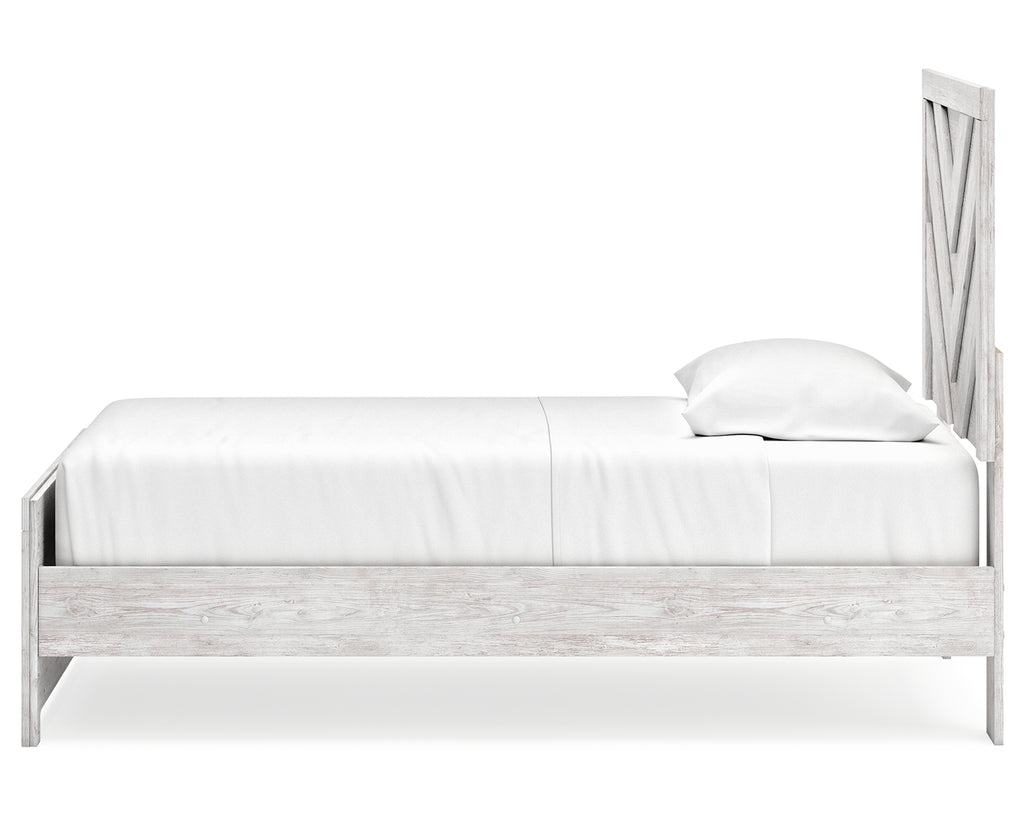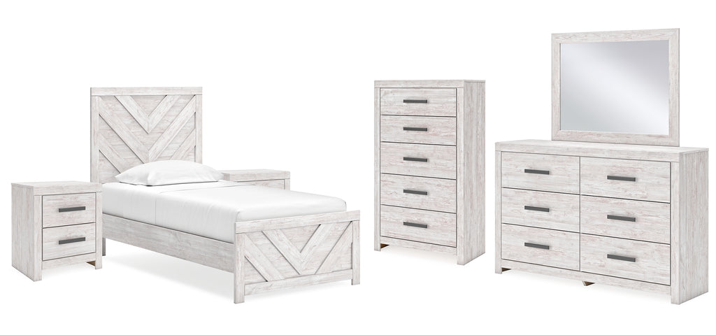 Cayboni Twin Panel Bed with Mirrored Dresser, Chest and 2 Nightstands