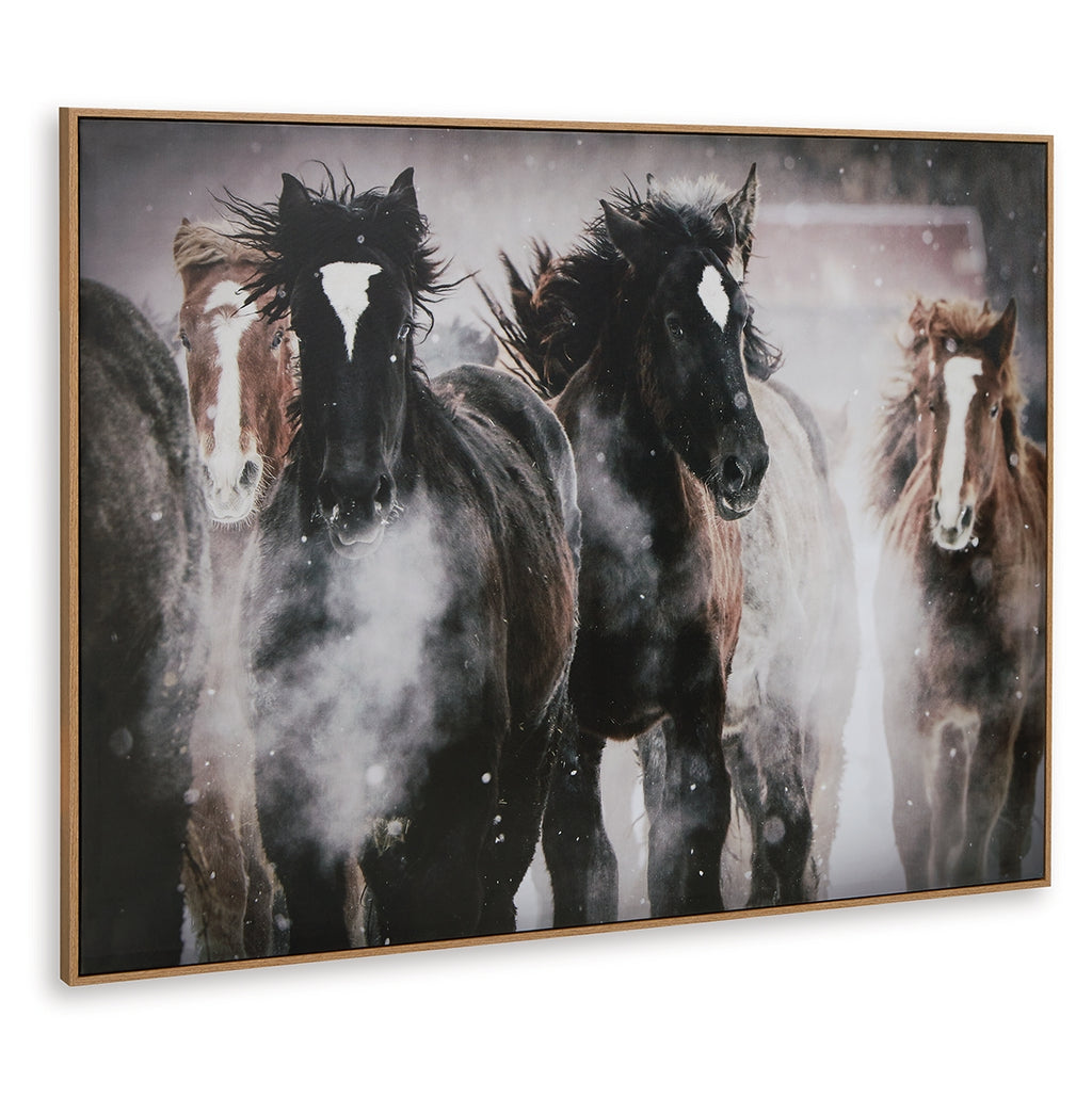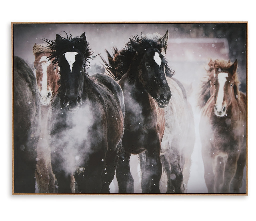 This wall art expertly captures the natural beauty and strength of equine movement. Balancing masculine sensibilities with the charm of farmhouse motifs, it’s a statement piece that works equally well staged with other subtle wall decor. Neutral hues give it the versatility to pair effortlessly with your existing furnishings.