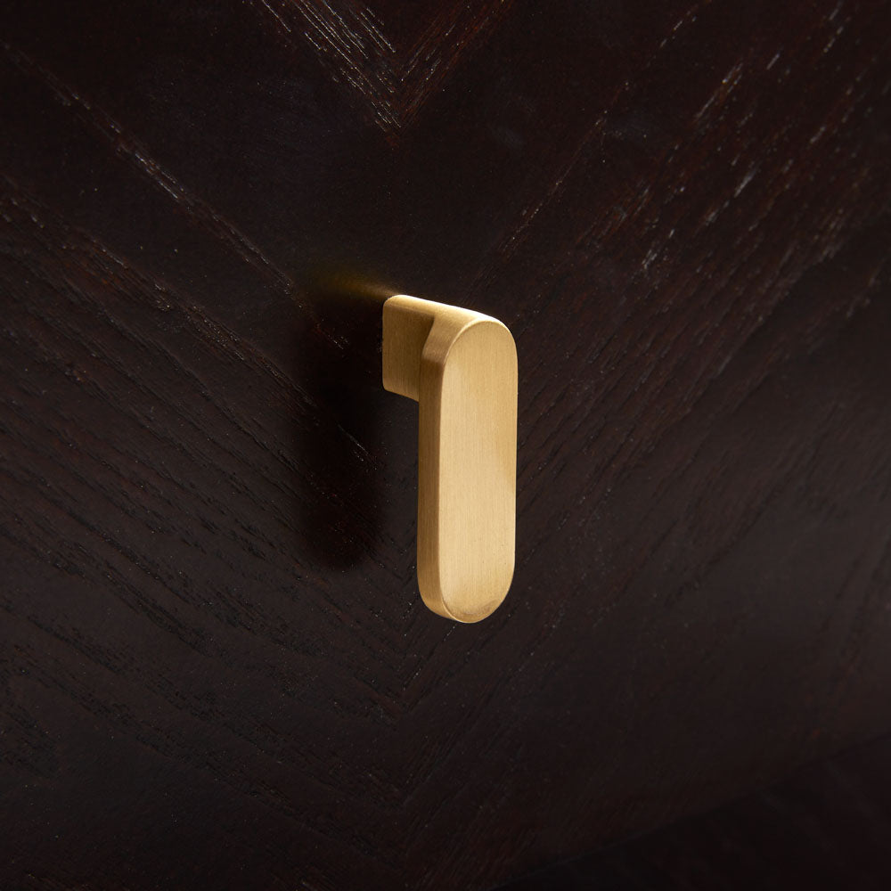 Introduce a statement of sophistication and glamour to your bedroom with the Chic Colette Bedside Table, accented with striking gold highlights. The table's dark, luscious tones harmonize with the brilliant golden knobs to create an air of opulence that effortlessly elevates any room’s decor. Its compact dimensions make it a versatile fit for any space, while the solid wood and ash wood veneer construction promises both durability and a touch of natural charm. With a generous surface and two well-sized drawers, this nightstand combines exquisite style with practical storage solutions, making it an ideal companion for your bed.