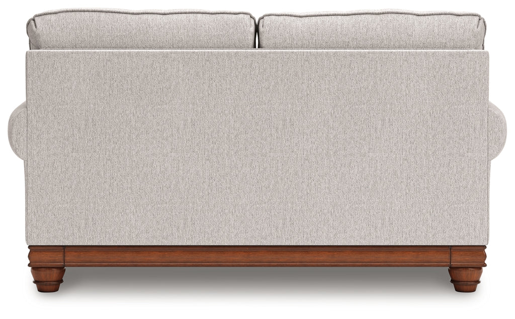 Fresh yet classic. That’s the beauty of this seating package. Dressy yet soft to the touch, its organic neutral-toned upholstery is sure to bring a transitional farmhouse aesthetic to your living space. A full wraparound base and decorative turned legs complete the set's cozy and inviting look.