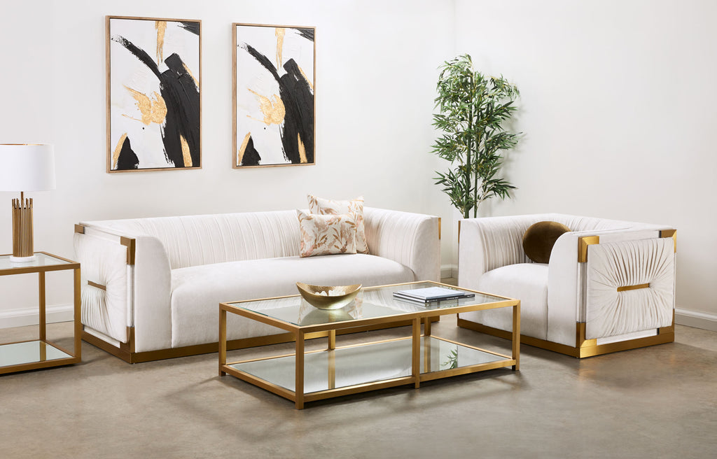 Experience luxury with our Contessa Vanilla Chic Accent Chair, where comfort meets modern opulence. Wrapped in the plush softness of Contessa Vanilla fabric and supported by a matt gold steel frame, this chair exudes elegance from every angle. Its generous dimensions provide ample seating space, inviting you to sink into its cushioned embrace. This Canadian-made statement piece is designed to elevate any living space with its sophisticated aesthetic and premium construction.