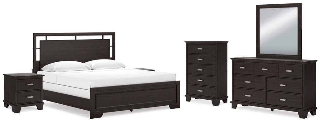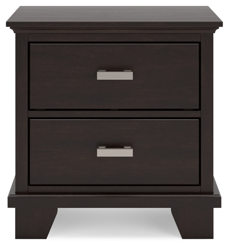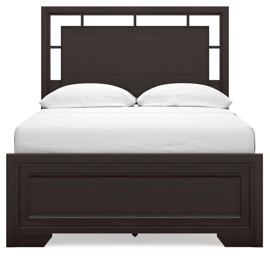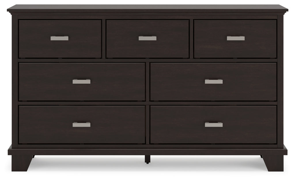 Feast your eyes on this richly versatile bedroom package. Its traditional-inspired dark brown finish effortlessly blends with contemporary details to create a stunning look that's not too stuffy or too trendy. Such a refined way to wake up your bedroom style.