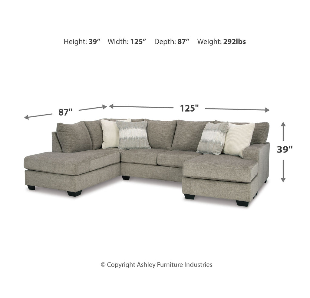 • Includes 2 pieces: left-arm facing corner chaise and right-arm facing sofa chaise