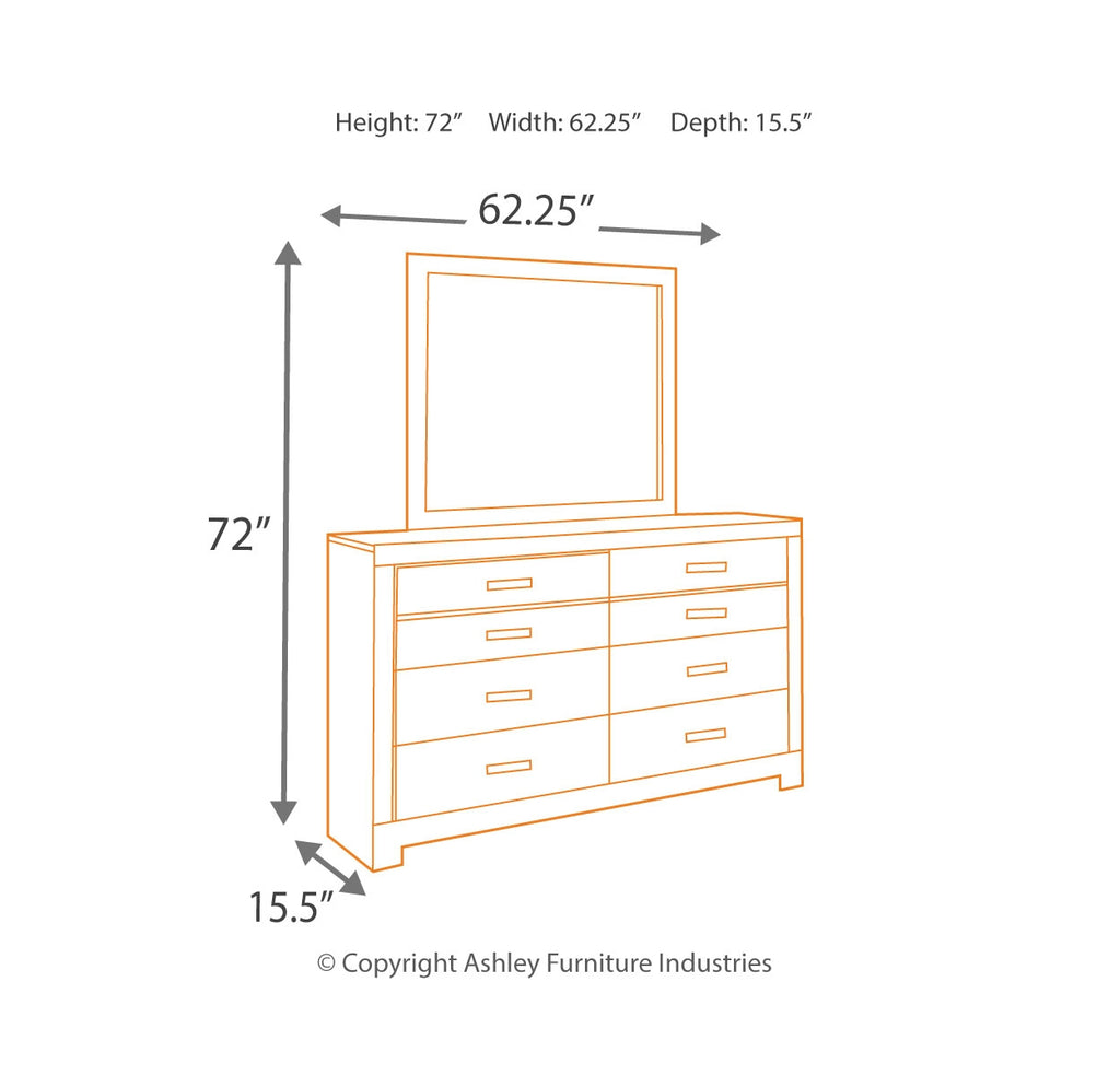 • Includes full panel bed (headboard, footboard and rails), dresser, mirror and chest of drawers