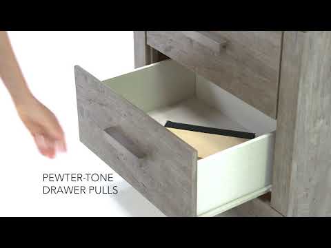 This nightstand’s weathered driftwood finish evokes such an ethereal vibe—exactly what you need for your serene master suite. Clean lines and simple yet substantial hardware make for a timeless look you’ll love living with for years to come. Two spacious drawers offer ample storage for all the bedside essentials, while its USB ports make charging wireless devices a breeze.