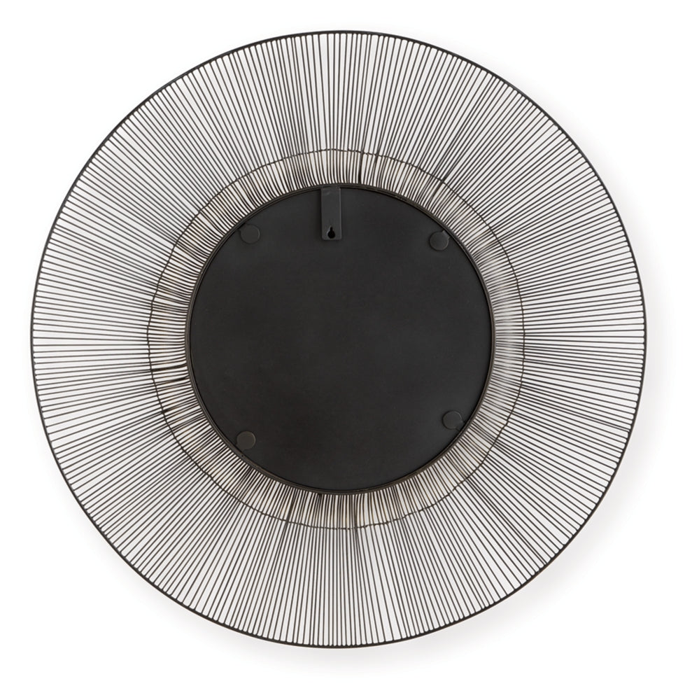 Make a statement with this accent mirror. Its curved sunburst design, with black beams and an inner goldtone ring, creates a striking piece, effortlessly elevating the spot where it shines brightest.