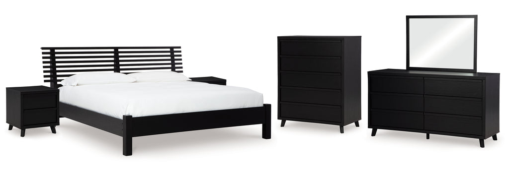 Danziar King Panel Bed with Mirrored Dresser, Chest and 2 Nightstands