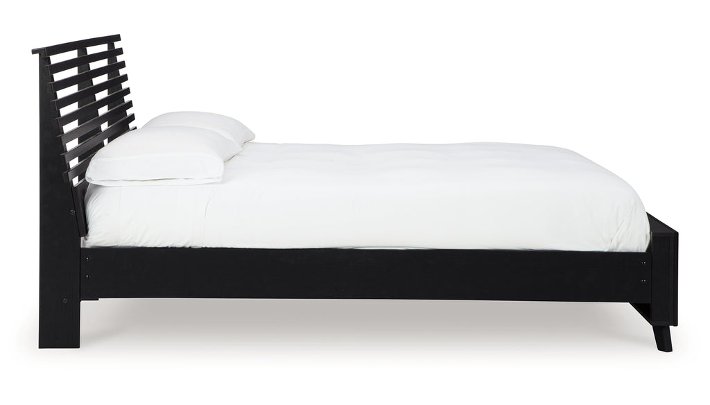 Sophisticated style for the savvy shopper. This panel bed prioritizes affordable, on-trend design. Its subtle replicated texture recalls the natural beauty of wood, highlighting the slatted styling. And a matte black finish savvily suits different approaches to modern aesthetics. Mix and match with light and bright hues, or pair with other dark tones for a moody look.