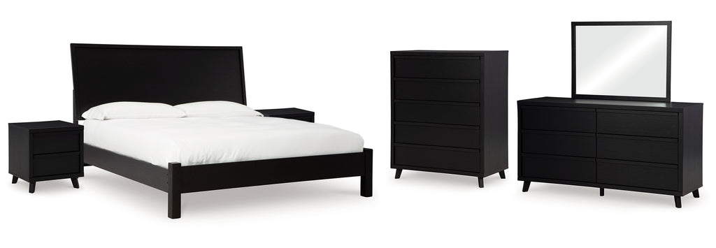 Danziar Queen Panel Bed with Mirrored Dresser, Chest and 2 Nightstands