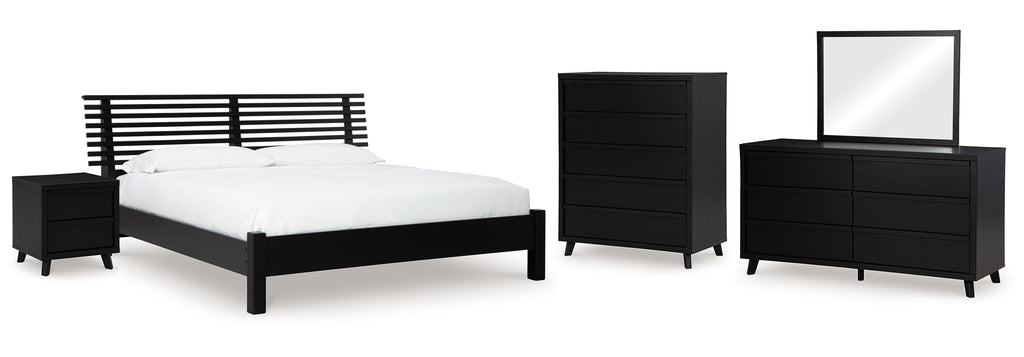 Danziar Queen Panel Bed with Mirrored Dresser, Chest and Nightstand