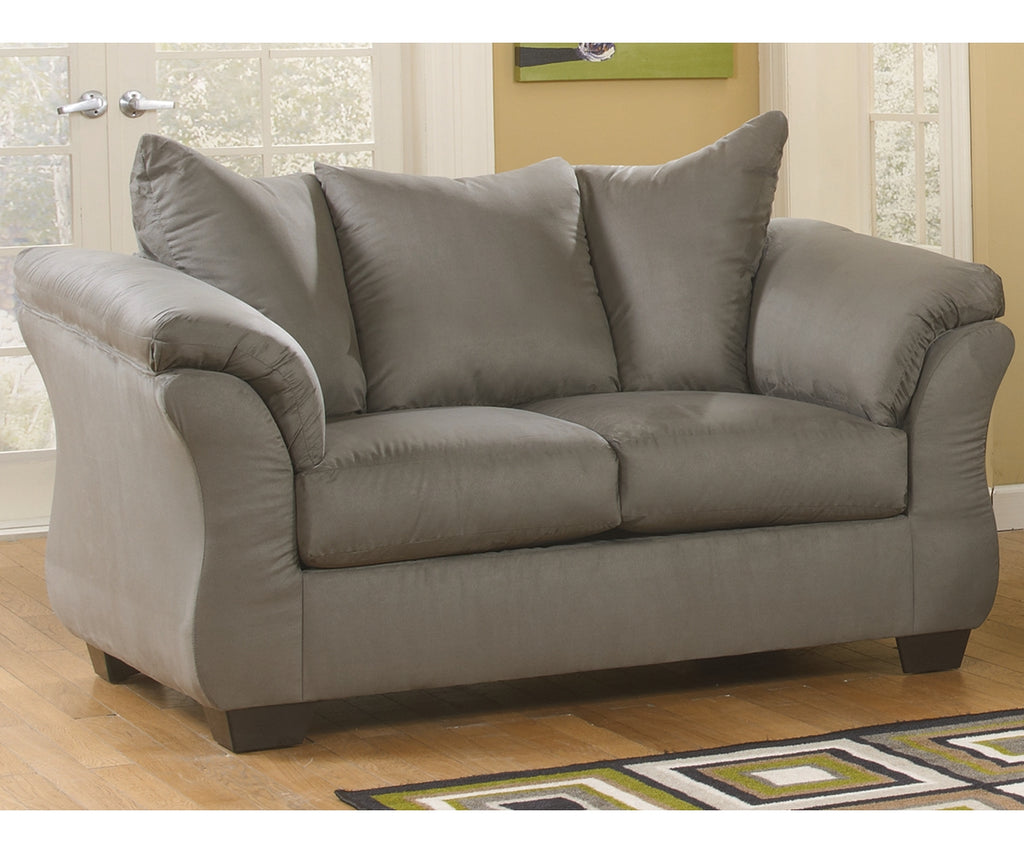Talk about fine lines and great curves. That’s the beauty of this standout loveseat—made to suit your appreciation for clean, contemporary style. A striking flared frame, comfy pillow top armrests and an ultra-soft upholstery that holds up to everyday living complete this fashion statement.