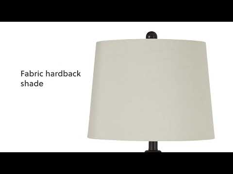 A delightfully turned pedestal base gives this table lamp a sense of easy elegance. Its dark bronze-tone metal is a simply stylish counterpoint.