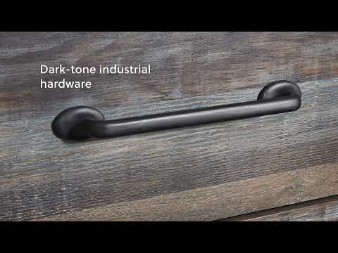When merged in just the right way, rustic and industrial styles can make one happy marriage. Case in point: this bedroom set with panel headboard, dresser/mirror, chest and dual nightstands. A refined take on barn board beauty, its complex, replicated wood grain showcases hints of burnt orange and teal tones for a sense of weatherworn authenticity. Love to read in bed? You’re sure to find the retro-chic light sconces and USB plug-ins on the open-slat style headboard such a bright idea. Elongated metal drawer pulls elevate the aesthetic.