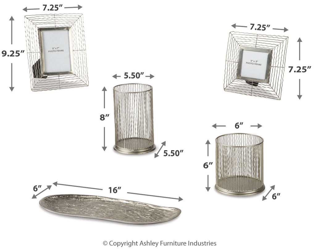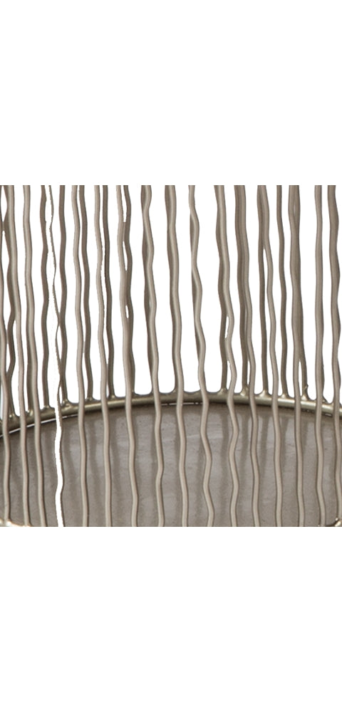 Make some waves with this highly contemporary accessory collection. Wonderfully open and airy, the wavy metal frames and hurricane candle holders beautifully go with the flow. Organic shaped tray is a natural complement.