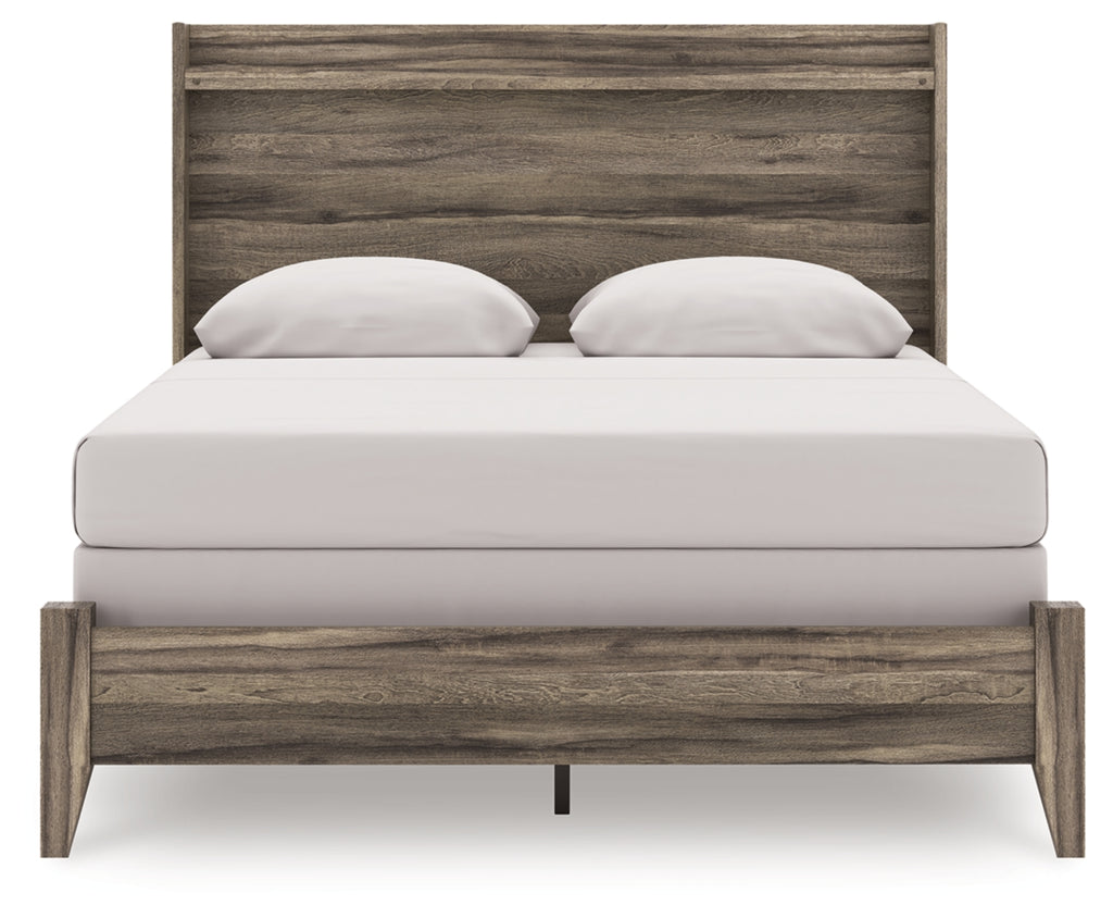 Rest in the casually cool style of this queen panel bed. A weathered brown finish and chill LED lighting create an easygoing vibe, setting the scene in your restful retreat. The bed's clean-lined design provides a fuss-free look.