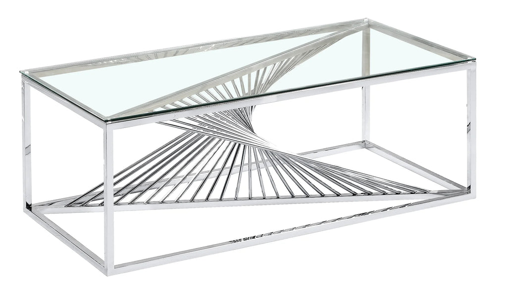 Introducing the Elegance Artisan Coffee Table – the perfect fusion of art and functionality for your living space. Crafted with precision, this table features a 12mm thick clear glass top, providing a durable surface that's easy to clean and maintain. The sculptural chrome-finished base will capture the eye, making it more than just a piece of furniture, but a centerpiece of conversation. Measuring 48"x24"x16", it's the ideal size for various living room layouts. Invite timeless elegance into your home with this stunning coffee table.