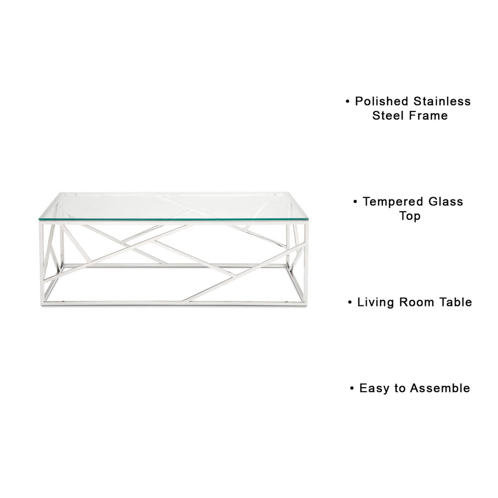 Transform your living space with the Elegant Carole Tempered Glass Coffee Table. With its clean lines and contemporary design, it instantly elevates the surrounding decor. Crafted meticulously with a polished stainless steel base, the table showcases a stunning tempered glass top that's both stylish and durable. Whether you're hosting a casual get-together or a formal gathering, this coffee table is sure to be the centerpiece of any room.