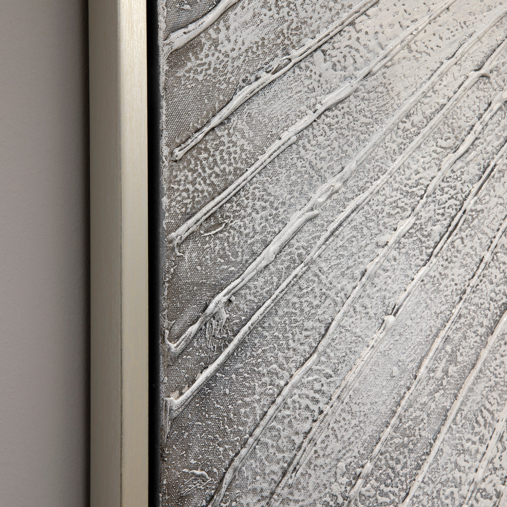 Elevate your living space with our Elegant Embellished Abstract Canvas Art. Every piece is a masterpiece, 100% hand-painted, ensuring its unique individuality. Adorned with a captivating texturized pattern infused with acrylic paint and a hint of glitter, this art piece exudes sophistication. The exquisite stroke details on each gallery-wrapped canvas showcase the dedication and skill poured into creating it. With its mesmerizing design, this artwork promises to be a conversation starter in any setting.