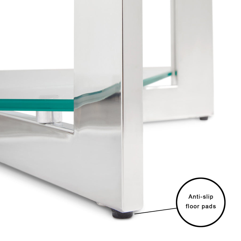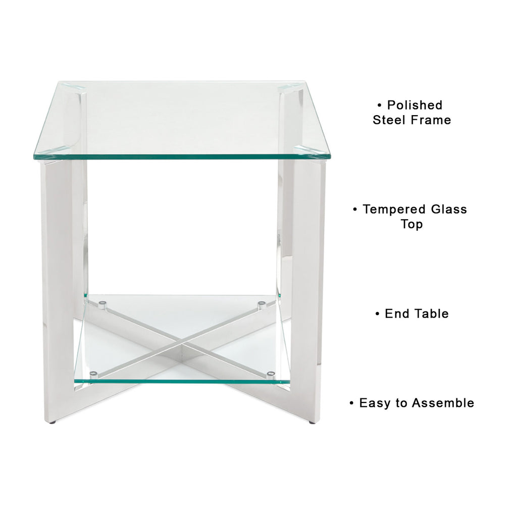 Introducing our Elegant Maison Glass End Table, a perfect blend of sophistication and functionality. Crafted with premium tempered glass and a polished stainless steel frame, this table exudes modern charm. Its compact dimensions make it versatile for various spaces in your home, offering both style and utility. Perfect for placing your favorite decor pieces, books, or even your evening cup of tea. Upgrade your living space with this stylish statement piece.