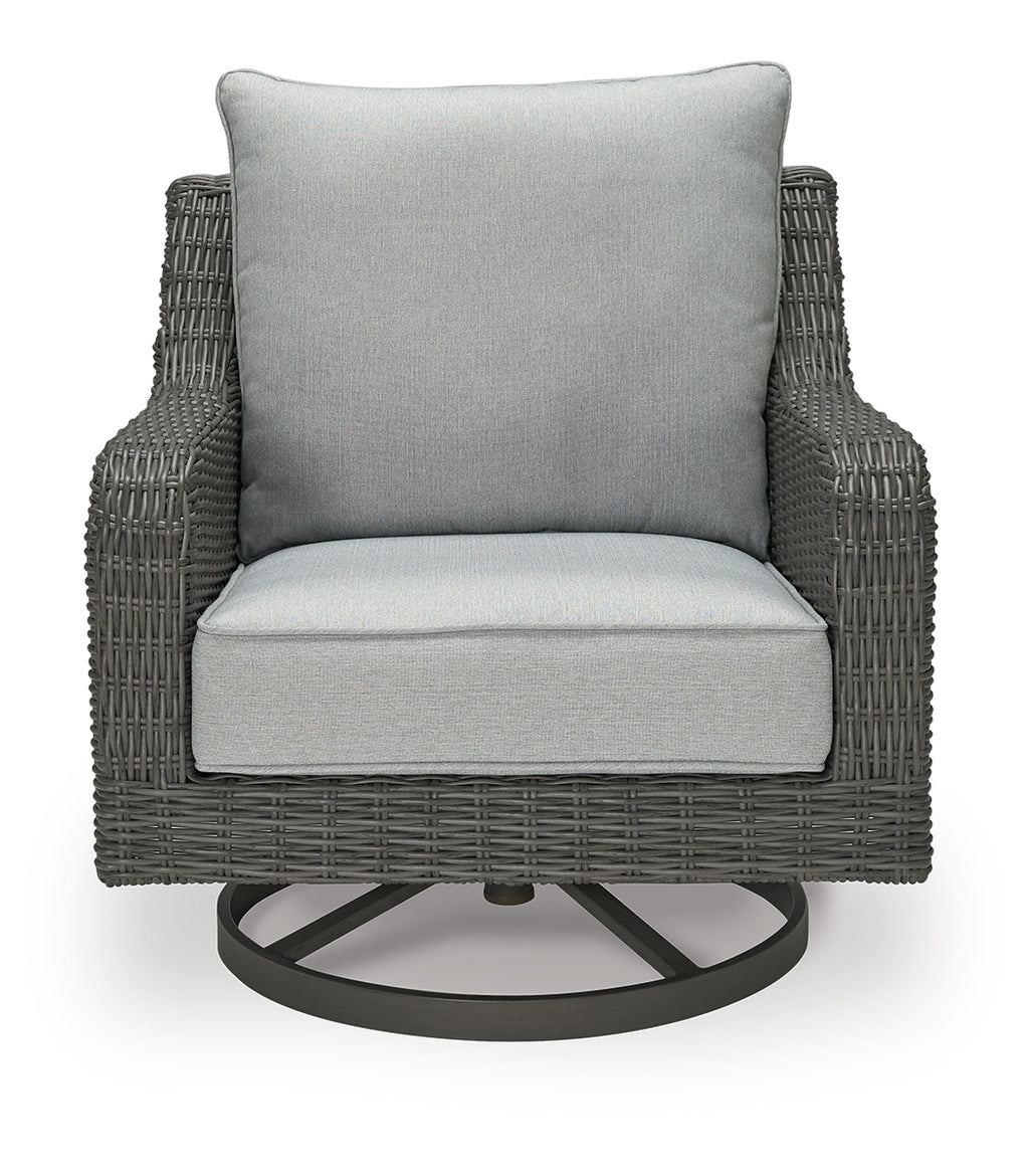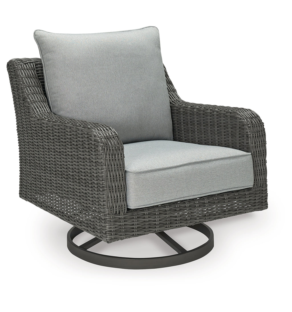 Add a distinguished touch of gray to your outdoor living space with this swivel lounge chair. It's made with resin wicker over an aluminum frame for a relaxed look that provides seasons of enjoyment. Rest assured, the thick seat and back cushions are wrapped in Nuvella® high-performance fabric that’s fade-resistant, stain-resistant and a breeze to clean.