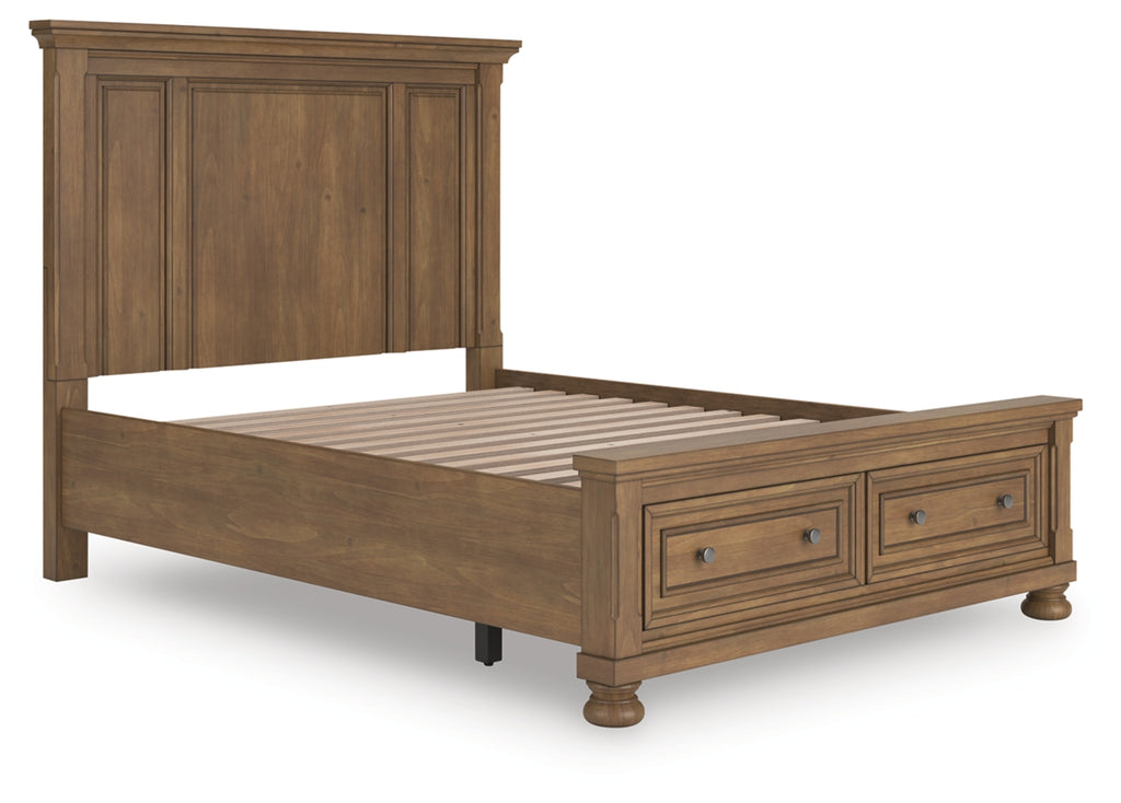 Features- Includes panel headboard, storage footboard and rails with roll slats
