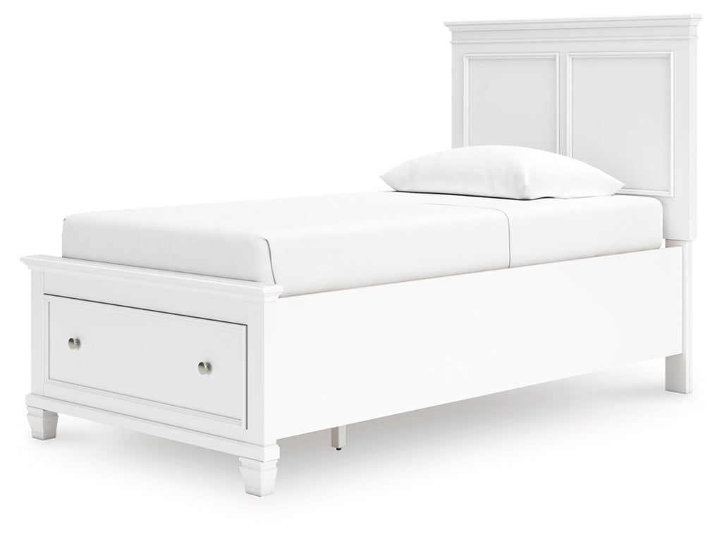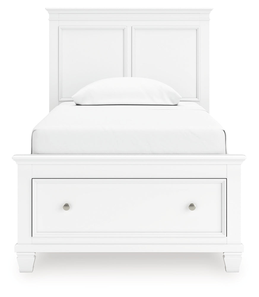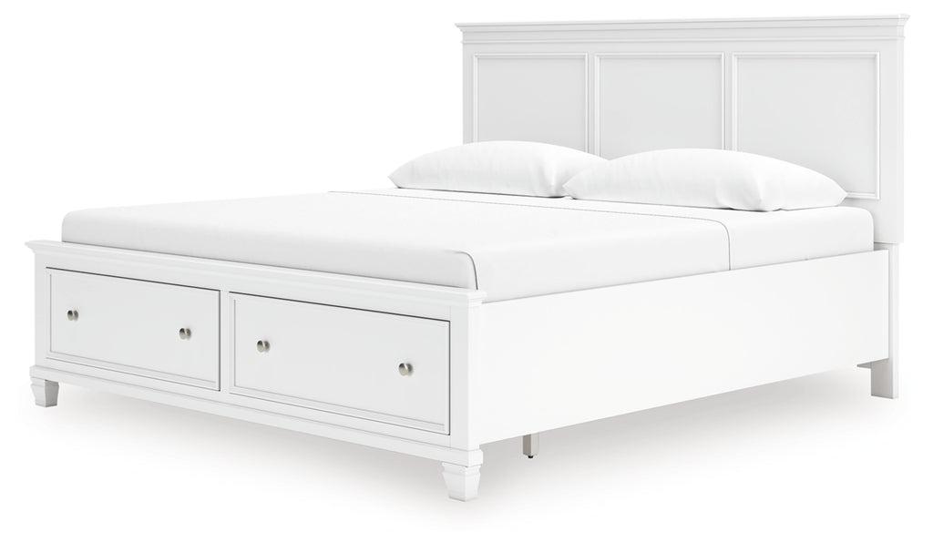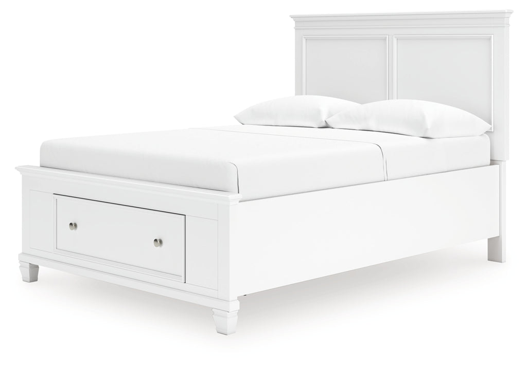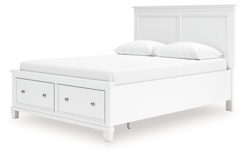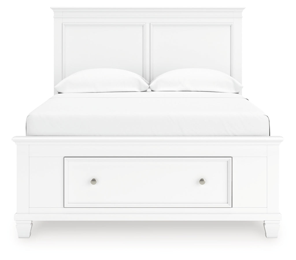 Features- Includes panel headboard, storage footboard, rails and roll slats