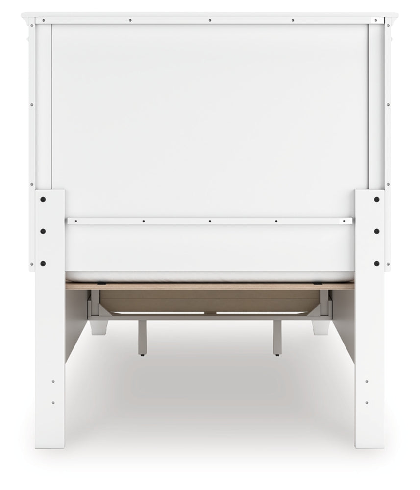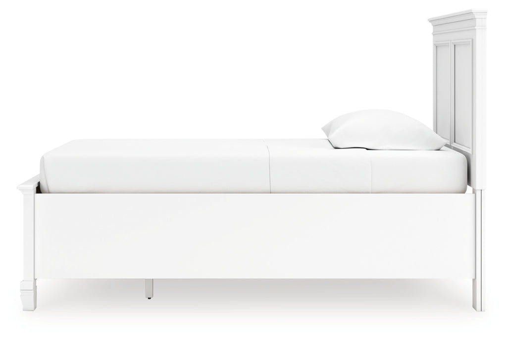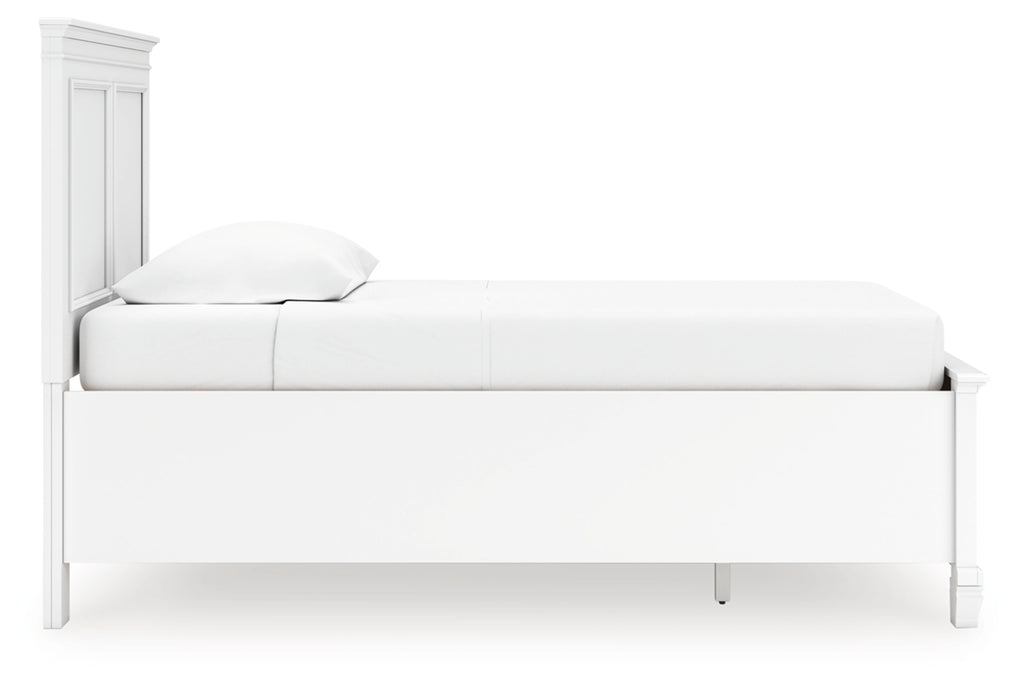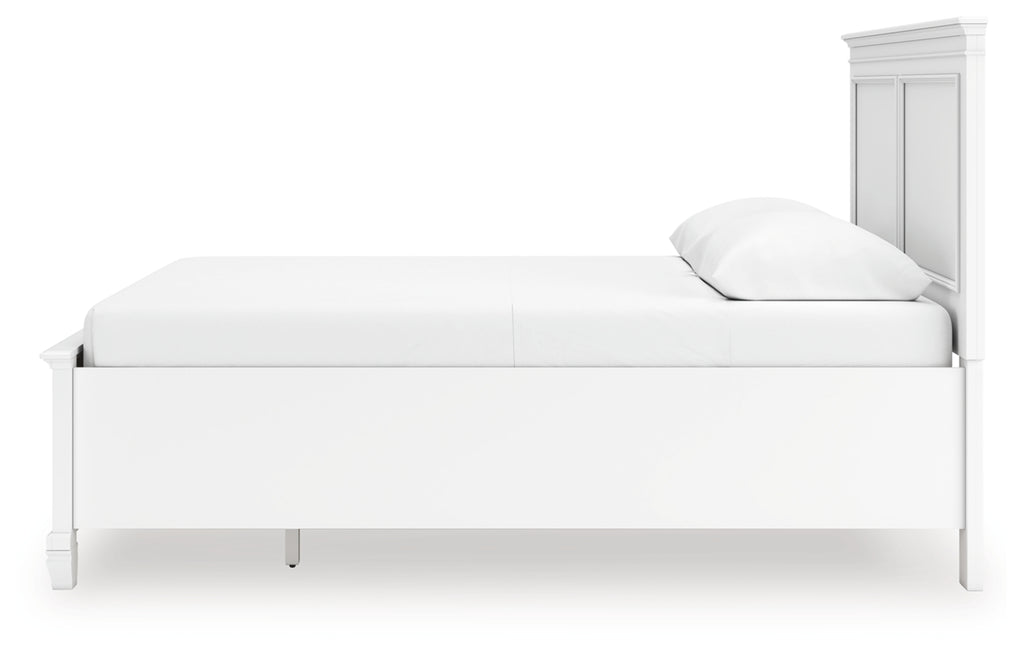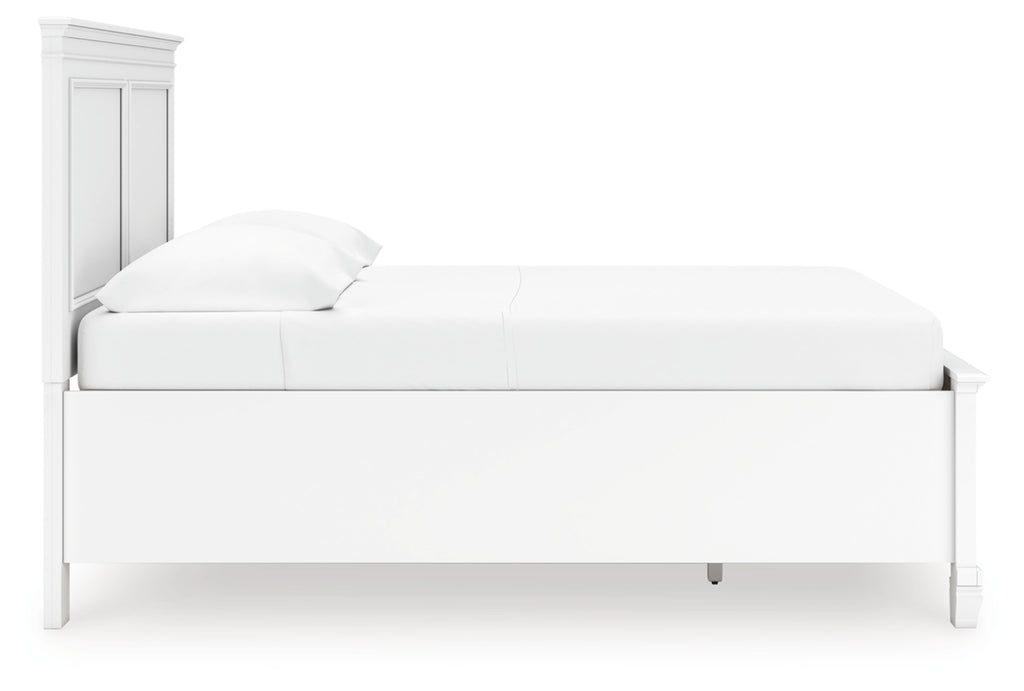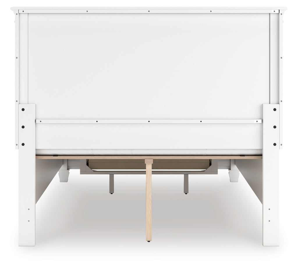 Features- Includes panel headboard, storage footboard, rails and roll slats