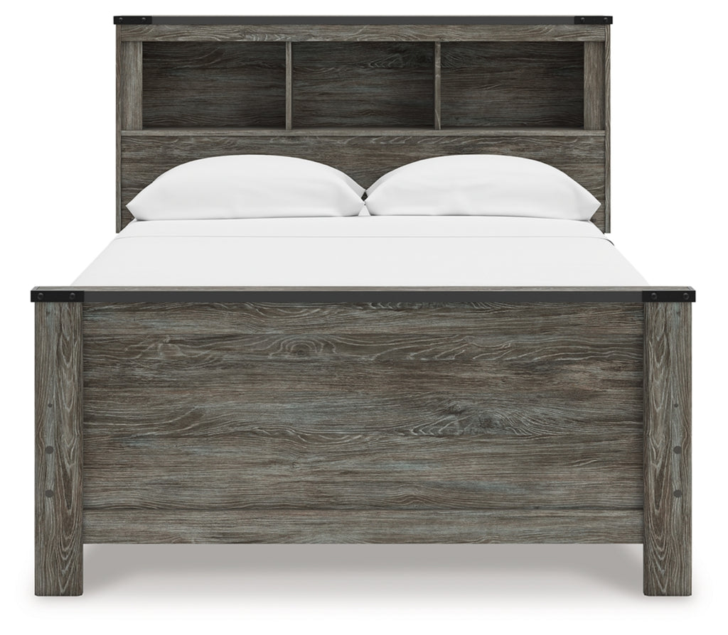 Features- Includes bookcase headboard, panel footboard and panel rails