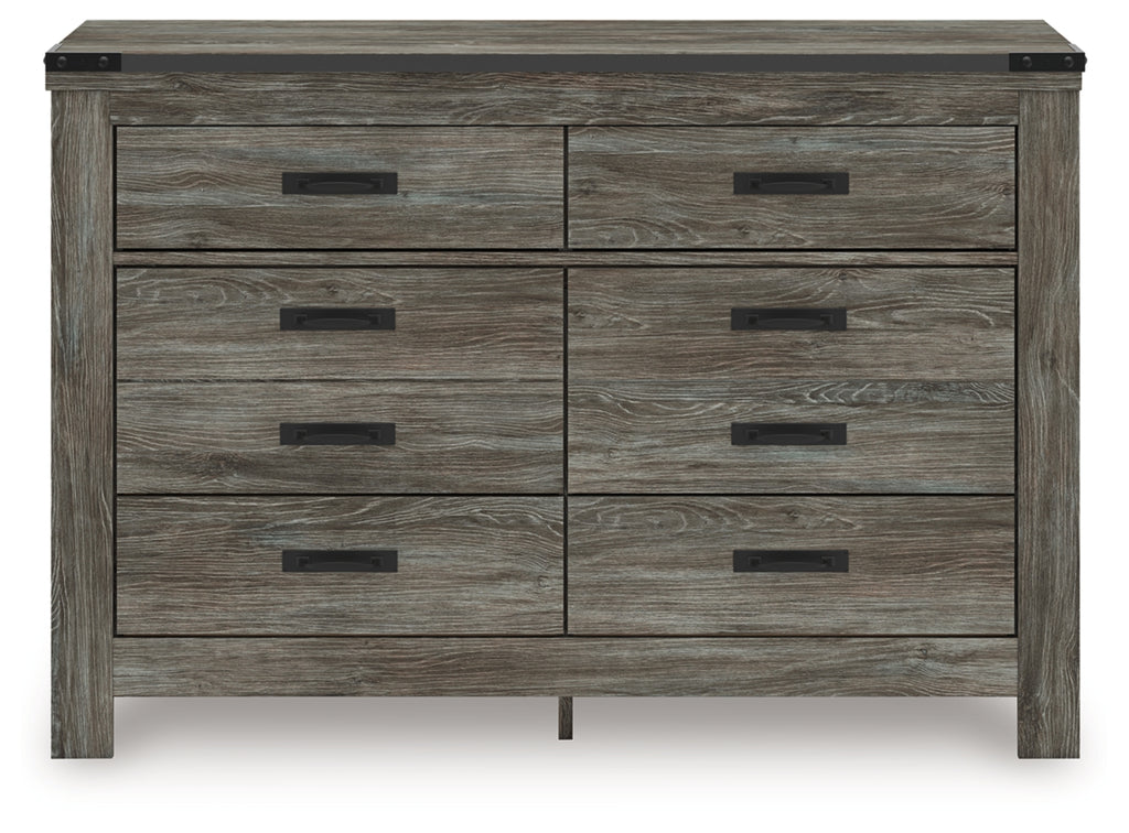 Cool, casual style is for all ages. With this dresser, they get the function they need plus the refined design you love. Approachably neutral in a rustic warm gray, it’s adaptable enough to pair with an assortment of existing colors and room decor. Faux metal detailing on the corners lends an industrial edge. Smooth-gliding drawers offer storage for clothes, toys and everything in between.