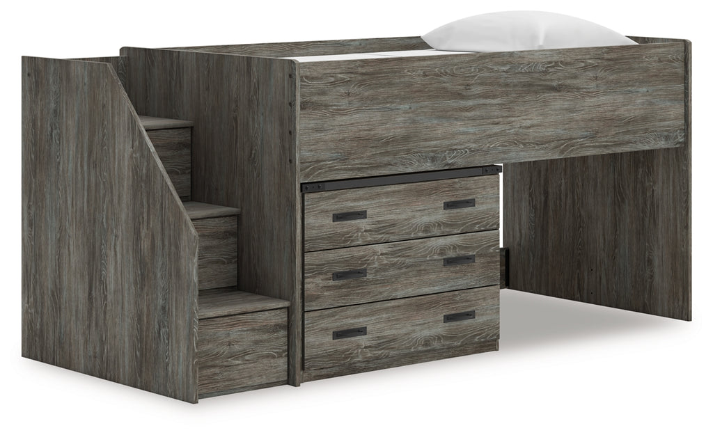 Features- Includes loft bed, left storage steps with loft ends, roll slats and loft drawer storage