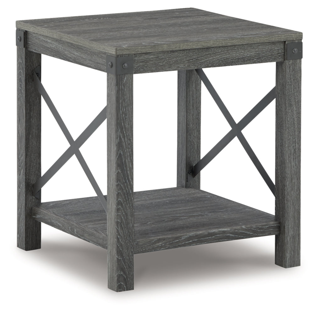 Raise the bar on modern farmhouse design with this accent table set. Sporting a grayish brown replicated wood grain effect, the coffee table's handy spring-loaded mechanism brings the tabletop closer to you. This versatile table makes it easier than ever to eat, work or play from the comfort of your sofa. A coordinating end table completes the set in style.