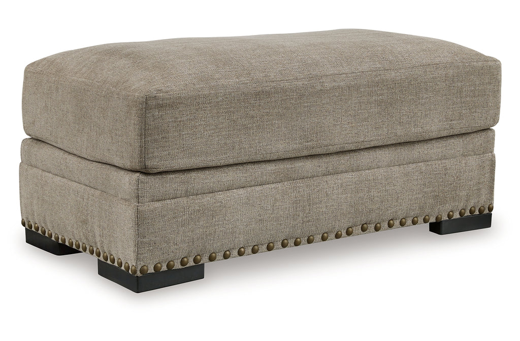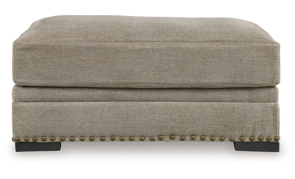 Looking to enhance your home's visual appeal? This ottoman offers sophisticated design, comfort and elegance with tonal colors and nailhead accents. Enjoy optimal coziness with luxurious soft upholstery and a feather-blend cushion. Perfect for modern spaces, it's just the spot to sit back and relax in style.