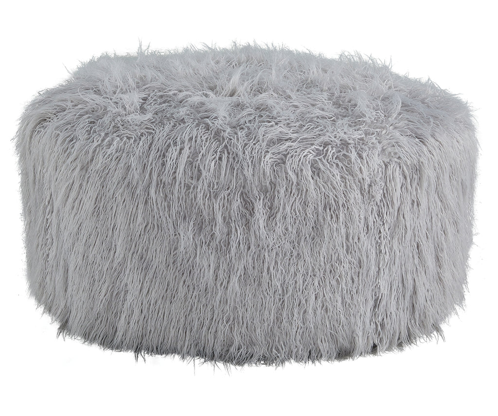 Don't shy away from decadence. Add a bit of bold design to your room with this oversized accent ottoman. The faux fur upholstery has a luxe look, and its casual light gray hue allows this plush piece to make a stylish statement in a variety of spaces.