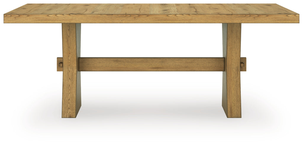 This dining table expertly refines the raw beauty of wood, bringing a rustic vibe to urban contemporary design. It creates an organically beautiful feel in your dining room—an extra-thick tabletop spotlights the unique, natural details of the wood. And the stunning simplicity of the materials allows you to seamlessly coordinate this table with your existing decor.
