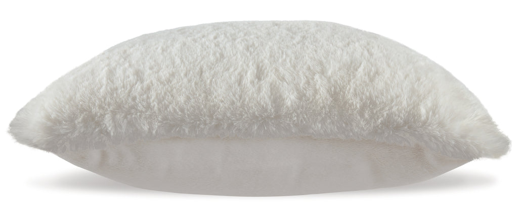 Soft, subtle and sensational. The plush feel of this faux rabbit fur pillow will drive you wild. Its white hue pairs with a variety of decor, from casual to contemporary.