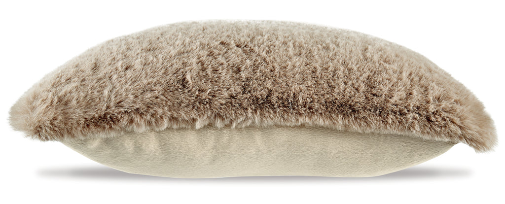 Soft, subtle and sensational. The plush feel of this faux rabbit fur pillow will drive you wild. Its taupe hue pairs with a variety of decor, from casual to contemporary.
