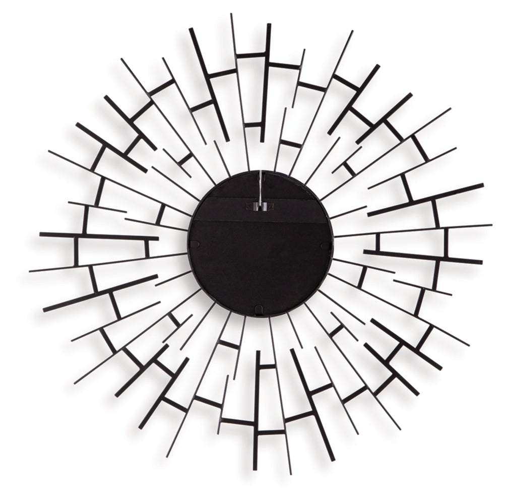 This accent mirror makes a bold statement in contemporary and industrial spaces. Framed with sunburst-style metal fretwork and finished in a luxe black, it's a fabulous blend of form and function.