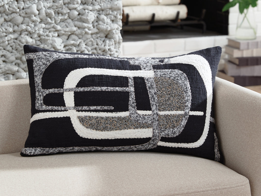 Modern art and cozy comfort blend beautifully in a new favorite spot to rest your head. This throw pillow’s embroidered abstract design in black, white and shades of gray is sure to elevate your trend-right decor with just the right touch of artistic flair.