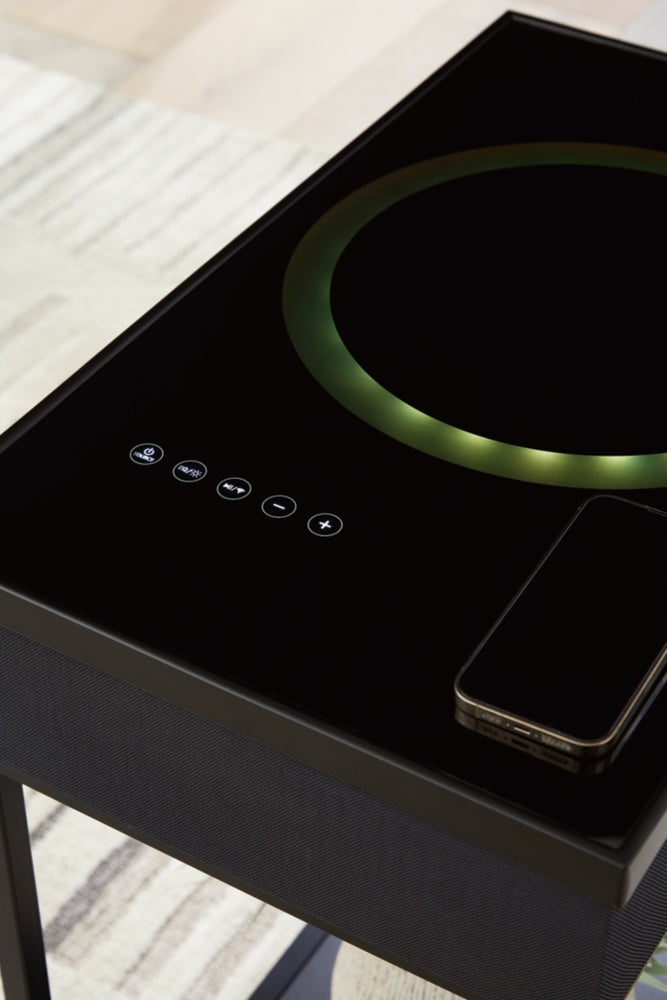 From cleaning day to game night, you love crafting the perfect ambiance with music. With the Gemmet accent table’s built-in audio capabilities, setting the mood is easier than ever. Connect wirelessly to the speakers while you keep devices ready to go with wireless and USB charging options. A contemporary design in a sleek black keeps the piece as fashionable as it is functional.