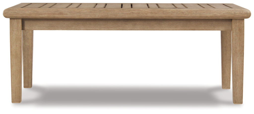 Discover a high-style alternative to traditional outdoor furniture. This outdoor coffee table marries sturdiness and style in such a delightful way. Better yet, it has the edge when it comes to affordability. For that much more weather protection, the table's eucalyptus wood frame with slat styling is treated to a 5-step finishing process.