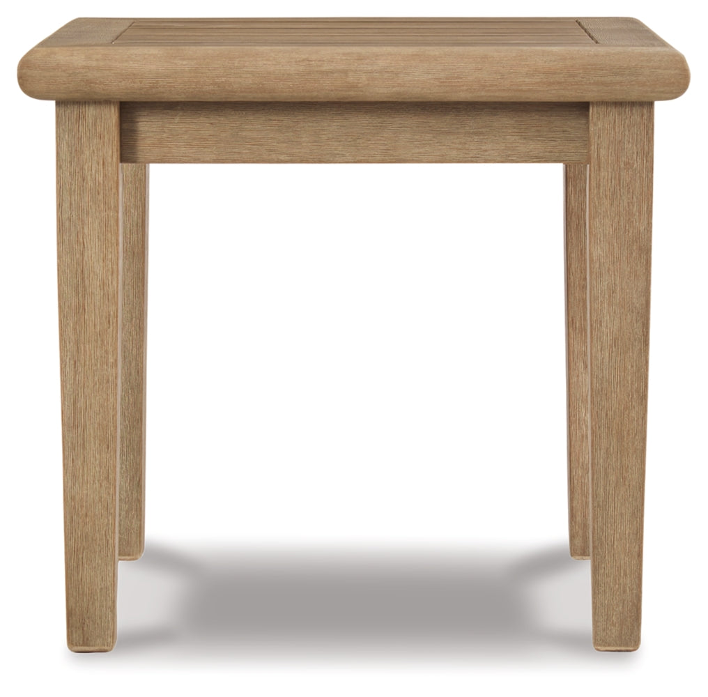 Discover a high-style alternative to traditional outdoor furniture. This outdoor end table marries sturdiness and style in such a delightful way. Better yet, it has the edge when it comes to affordability. For that much more weather protection, the table's eucalyptus wood frame with slat styling is treated to a 5-step finishing process.
