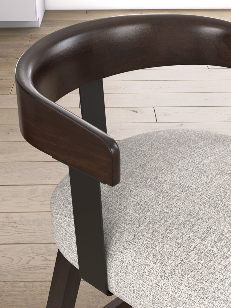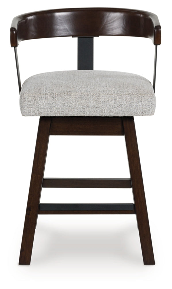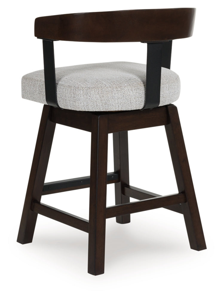 Modern sophistication, beautifully served. This swivel counter height stool raises the bar with a cool, contoured back design with a comfortably cushioned seat. Dark and rich, the monochromatic finish enhances its sleek profile. A seamless 360-degree swivel feature offers functional appeal.