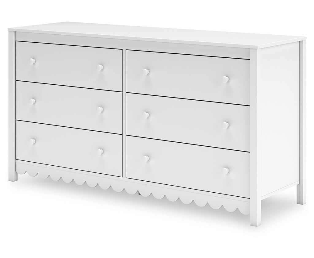 Thanks to its playful scalloped design, this bedroom package is the perfect fit for cottage or coastal farmhouse interiors. Its matte white finish offers the perfect backdrop to showcase your personal taste and creativity. The look is timeless. The feel? Right at home.