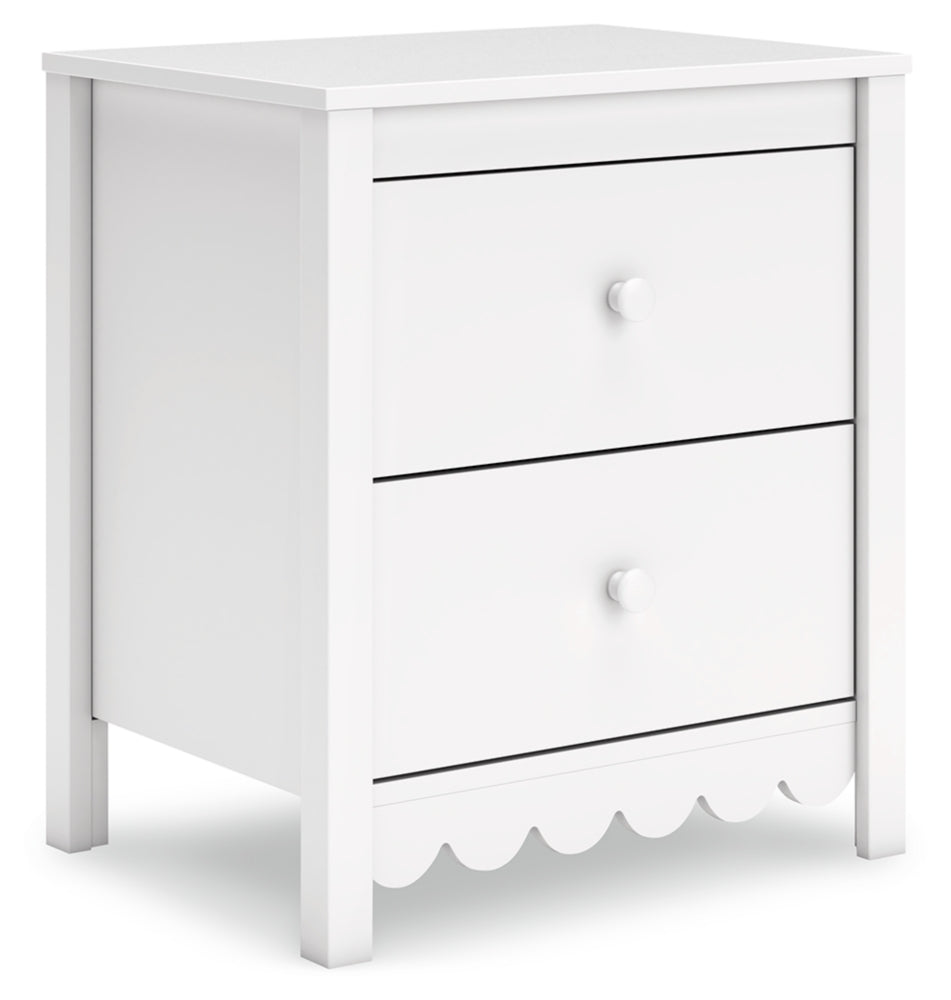 Thanks to its playful scalloped design, this nightstand is the perfect fit for cottage or coastal farmhouse interiors. The matte white finish serves as the perfect backdrop to showcase your personal taste and creativity. And its spacious drawers let you say goodbye to clutter and hello to well-organized whimsy.