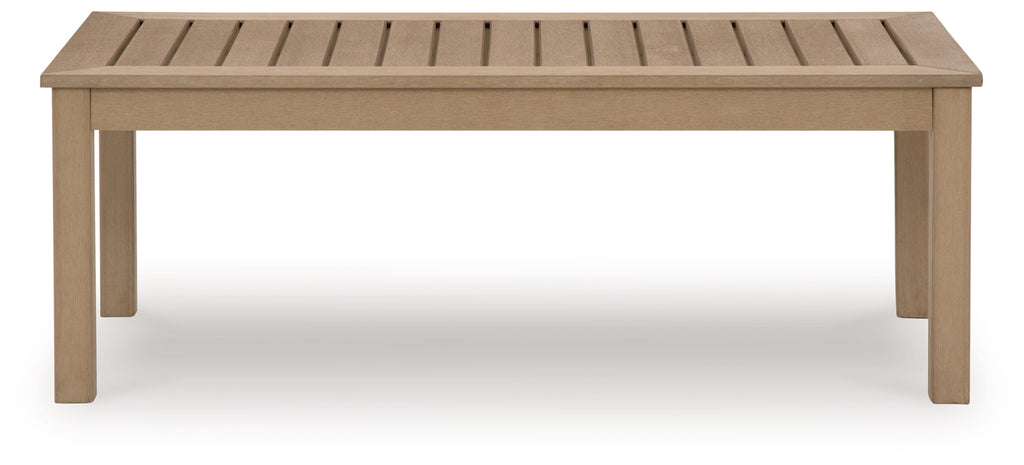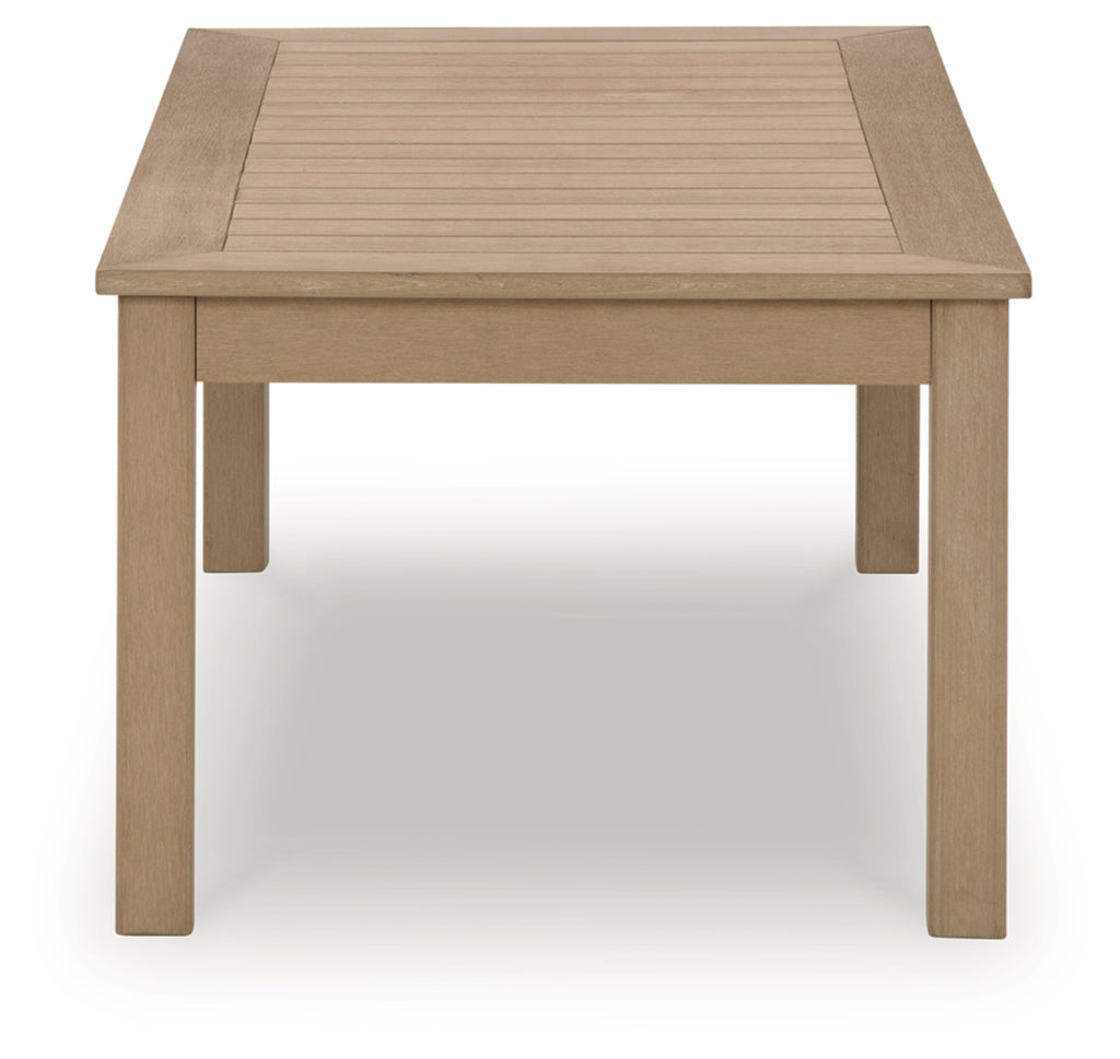 This coffee table is a beautiful addition to any outdoor living space. Effortless in its simplicity, this piece echoes your easygoing sensibilities. Combining durable, cutting-edge engineered materials, its Weatherwood construction in a blond wood color enhances the contemporary design. Pair this table with the matching sofa and chairs for a spectacular backyard or patio seating arrangement.