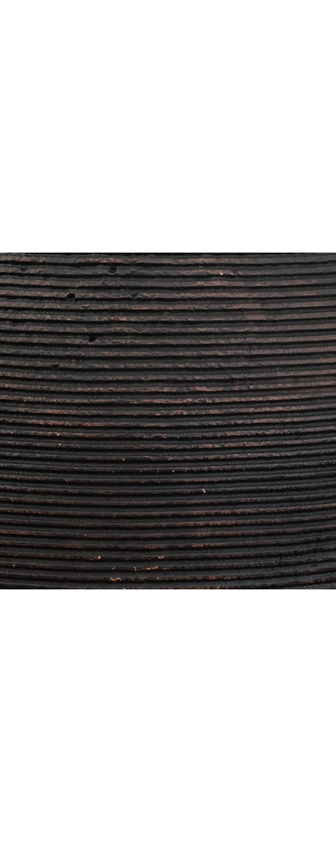 Ribbed textural rings give this vase a wonderful artisanal quality. An antiqued brown finish catches the eye, drawing attention to this elegantly earthy centerpiece.