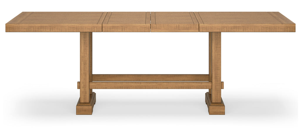 • Table with double trestle base and solid wood stretcher