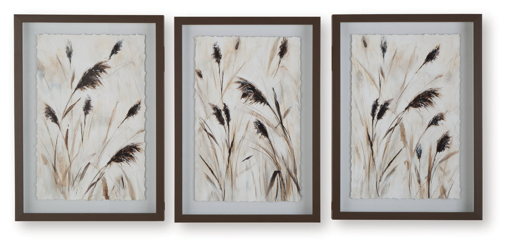 Add a touch of natural tranquility to your decor with this wall art set. It inspires in casual and coastal spaces, with each piece showcasing a variation of a classic wispy botanical pattern. A raised print design brings subtly eye-catching visual depth to the trio.