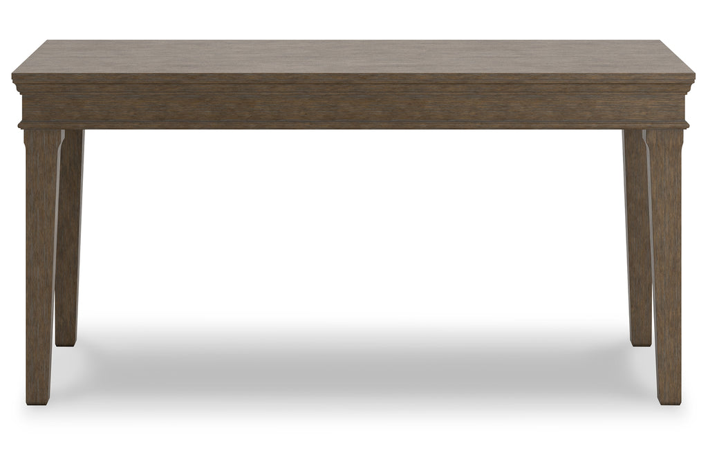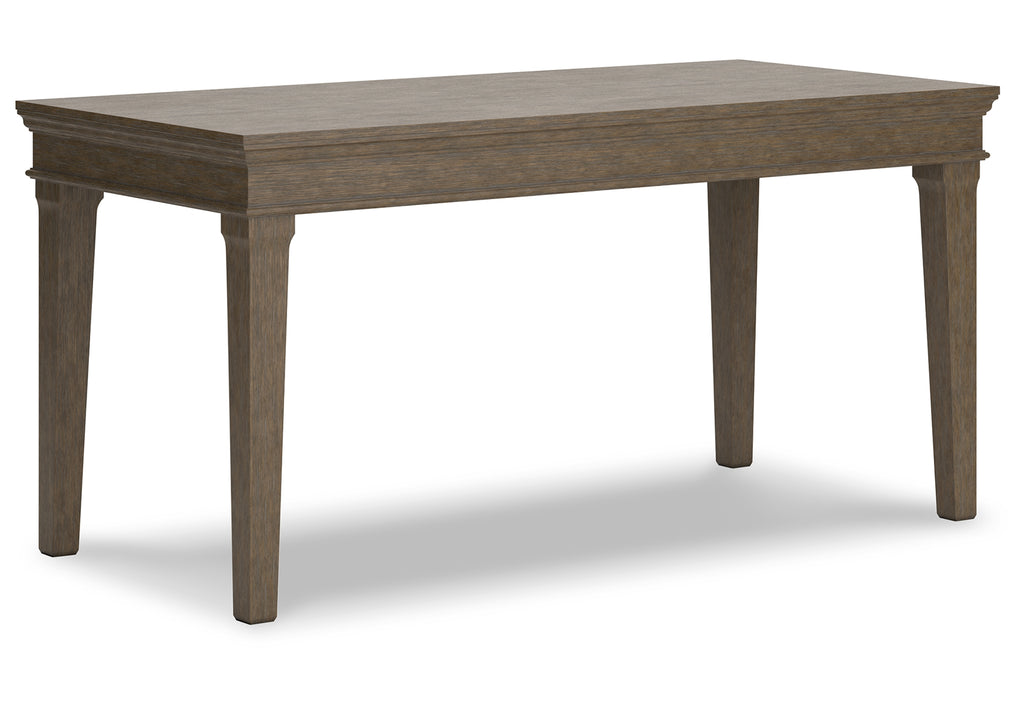 Make a style statement with this home office desk. Its traditional design is updated with an on-trend weathered gray finish and wire-brushed texture. The desk's large tabletop makes for a well-organized workspace.